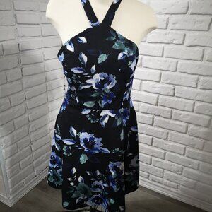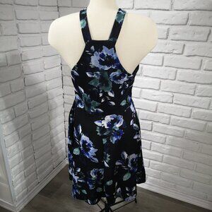 Guilty Ladies Black with Flower Pattern Size Large Sleeveless Halter Dress