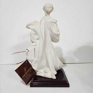 Elevate your decor with the timeless elegance of this Guiseppe Armani Florence Figure. Standing at 12 inches tall, this exquisite piece depicts a lady holding fruit, showcasing the masterful craftsmanship of Guiseppe Armani. Crafted in 1986, it remains in pristine condition with no chips or cracks.