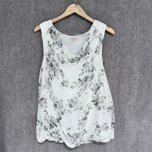 Lovely floral print blouse with a draped neckline. Clear sequin detailing on the shoulders adds a little interest without being over the top. Bubble hem. Lined.