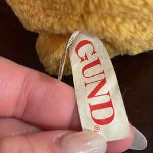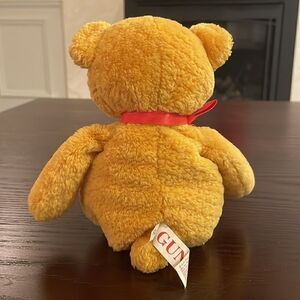 Gund Orange Teddy Bear with Red Bow Excellent Condition 10” Long Braun