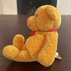 Gund Orange Teddy Bear with Red Bow Excellent Condition 10” Long BrAun