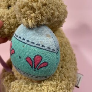 Adorable Gund stuffed bear. Soft and cuddly. Holds a blue egg with pink accents.