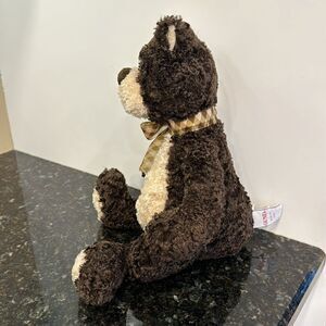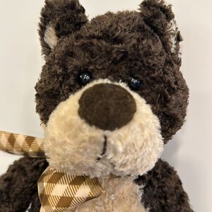 Gund brown teddy bear BIXBY 15154 Tan Plaid Bow sitting 12" Striped Yellow