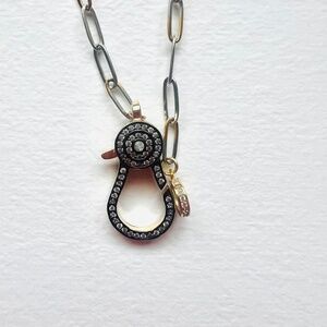Gunmetal Large rhinestone lobster clasp on two tone mixed metal necklace