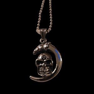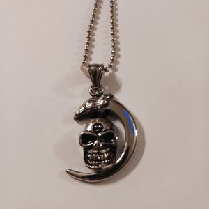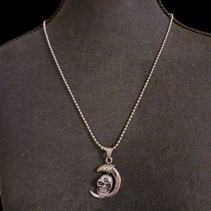 This gothic, biker pendant features a striking gunmetal tone claw with a skull inside, creating a menacing yet stylish design. Suspended on a versatile 22" ball bead necklace, it can be customized to your preferred length. The pendant measures approximately 1.5" x 1", making it a bold and edgy accessory.