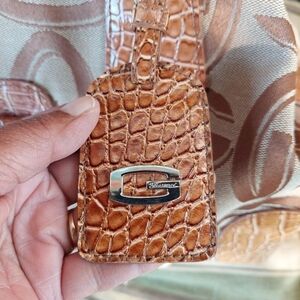 Very slick, stylish look. Faux embossed embellishments. Logo mayerial outside and inside. Lots of room for everything. Nice long straps. Approx 10" from center. Just what a gal needs! Approx 16" x 11" x 6". Gussaci.