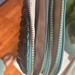 Gussaci Teal Green Vegan Leather Small Crossbody Bag 3 Sections Adjustable Charm