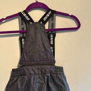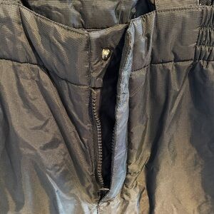 Stylish dark gray ski pants. Features logo straps. Removable straps and bib. Size 10 kids. Worn a few times.