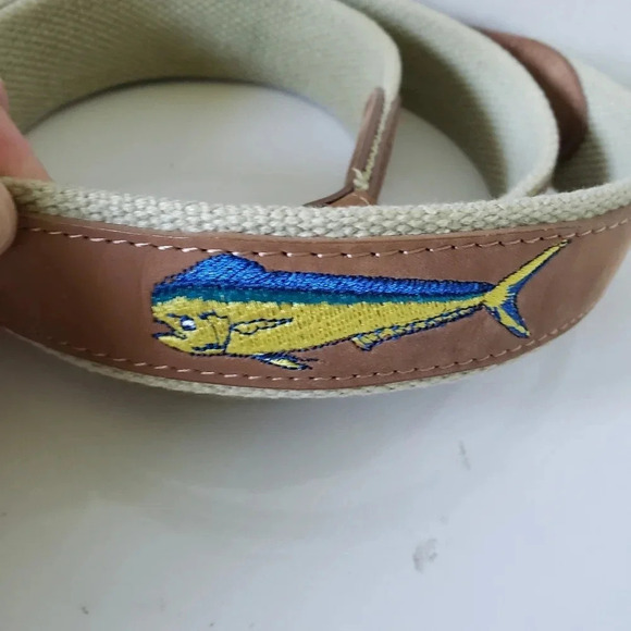Guy Harvey Mens Fish Golf Belt Canvas/Brown Leather size 42.