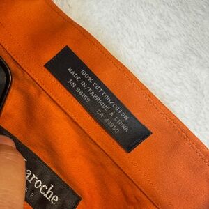 Guy Laroche Dress Shirt Mens 16 Orange 100% Cotton Long Sleeve Office Preppy