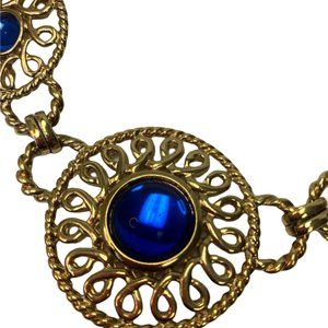 Guy Laroche Gold Blue Cabochon 3 Ring Necklace