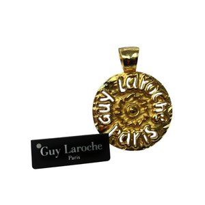 Guy Laroche Gold Engraved Logo Round Pendant