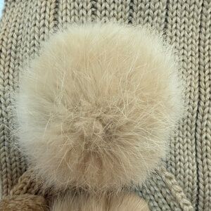 Guy Laroche Wool Scarf – Beige Knit with Real Fur Pom Poms