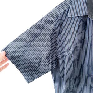 Guy Laroche Vtg Navy Black Stripe Modern Fit Cotton Short Sleeve Dress Shirt