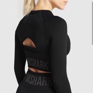Gym Shark Flex Sports Long Sleeve Crop Top Black/Charcoal Women's size M