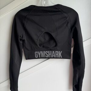 Gym Shark Flex Sports Long Sleeve Crop Top Black/Charcoal Women's size M