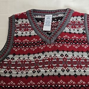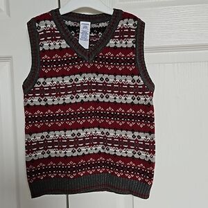 Gymboree Boy's V-neck Sleeveless Knitted Vest Gray & Burgundy 5 Years Old