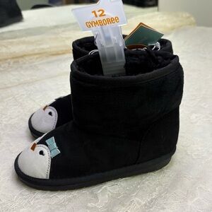 Gymboree Girls 12 NWT Faux Shearling Ugg Style Boot Black Penguin Toe Slipper