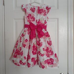 Gymboree Girl's 7 White Pink Floral Back Bow Cotton Easter Spring Dress