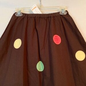 Super adorable brown skirt detailed with circle patch embroidered dots.