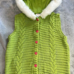 Gymboree - Green knit sweater vest with fur trim hood. Size 7-8
