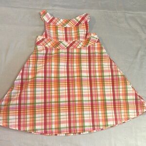 This casual sundress from Gymboree features a vibrant plaid pattern in orange and yellow, perfect for warm weather. The sleeveless design and square neckline add a touch of elegance, while the A-line silhouette ensures comfort and ease of movement.