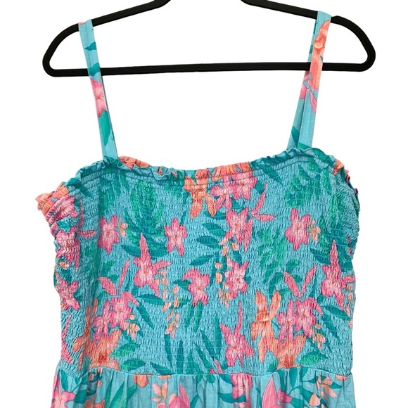 Gymboree Maxi Dress Womens XXL Blue Pink Floral Lined Blend Smocked Stretch