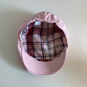 Girl's pink newsboy cap with red, navy, pink, & white plaid inner lining. 100% cotton. Stretchy elastic closure on the back. Gently used & in great condition.