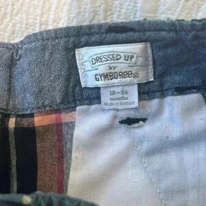1 pair of gymboree shorts with side pockets, belt loops, and elastic waist. These shorts can be used for dressing up or for causal wear.