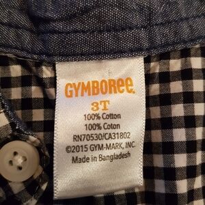 Gymboree boys size 3T black & white checked button up shirt, 1 pocket, last picture shows a faint stain on the cuff,