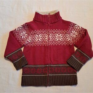 Gymboree boys xs or 3-4Mountain Lodge red and brown zip front sweater VGUC
