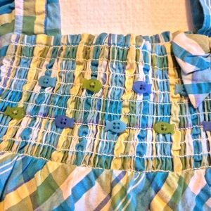 Gymboree girls size 2T Sea Splash line sleeveless smocked dress plaid, little fish buttons on the front smocking, matching bow on front GUC for pictured paint spots, they blend in fairly well