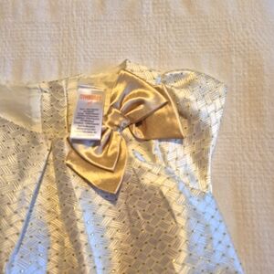 Gymboree girls size 2T gold shift style dress with gold bow, back button closure NWOT