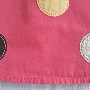 Gymboree girls size 5 coral colored lined tank top with bows on the shoulders, multi colored circles 3 have sequins sewn on, zipper closure on back, some fade
