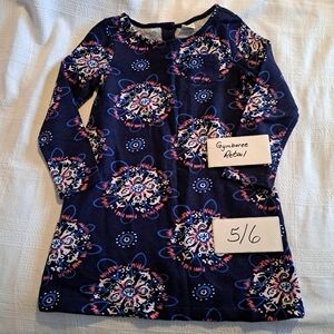 Gymboree girls size 5-6 navy blue dress with flower design, long sleeved