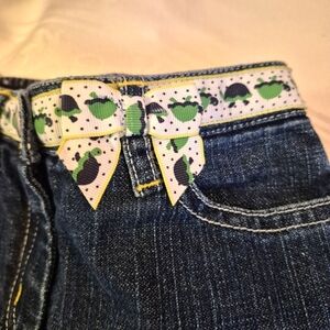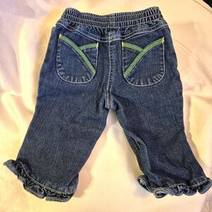Gymboree girls size 6-12 months jeans Prep Club line, turtle ribbon on the front, elastic waist on the back, zipper with snap closure, VGUC
