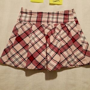 Gymboree girls size 8 plaid flannel skirt, modesty shorts, bow on the front, side zipper closure, pink, red, gray, white & black