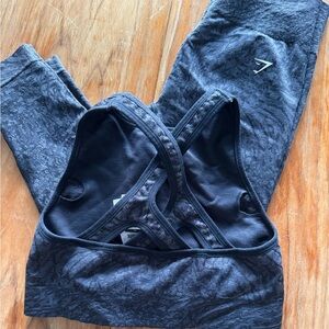 Stylish black patterned activewear set. Includes a top and leggings. Perfect for workouts.