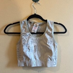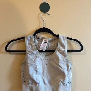 Top that can also be worn as a low impact sports bra. High neck, light green.