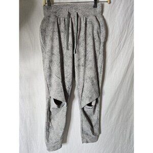Gymshark Chalk Joggers Women's Gray White Paint Splatter Cut Out Knees Zip- XS