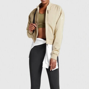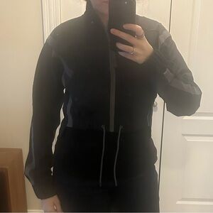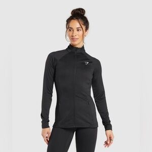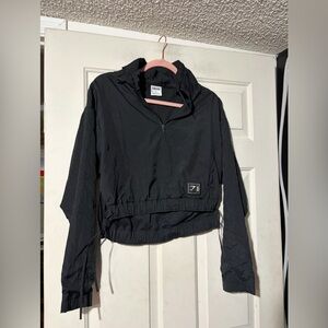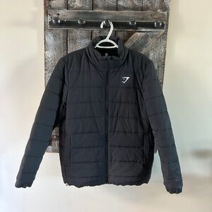 Sleek Gymshark jacket in charcoal and black. Ideal for workouts or casual outings.