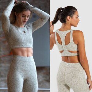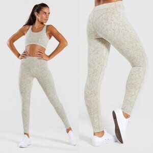 Gymshark Fleur Texture Leggings in Washed Khaki Mari and Women's Size Large. Poly / nylon / elastane. Machine washable. Very good pre-loved condition. No visible flaws.