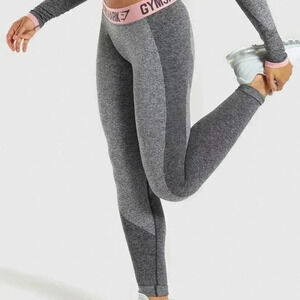 Gymshark Flex Leggings Mid Rise Grey Pink Waistband Women's Size M