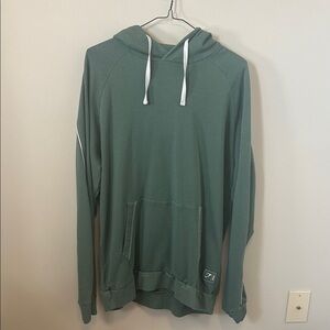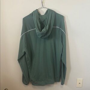Comfortable and stylish green hoodie. Features white drawstrings and accents. Ideal for casual wear. Good condition smoke free pet free home.