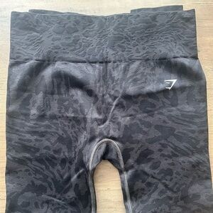 Sleek dark leggings with subtle pattern. Ideal for active wear. Soft and stretchy material.
