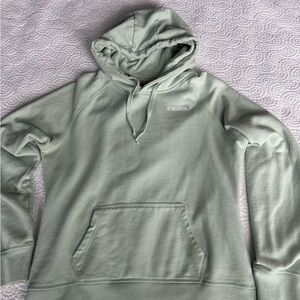 Cozy light green sweatshirt. Features a drawstring hood. Perfect for casual wear.