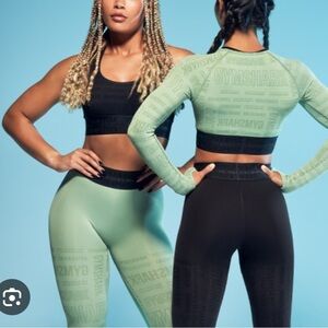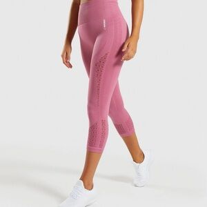 Gymshark light pink leggings with wide elastic waistband. Crop style. Excellent condition, no pilling. Size small