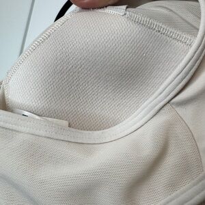 Supportive and sleek, this Gymshark Mesh Neckline Sports Bra in off-white is designed for high-impact workouts.