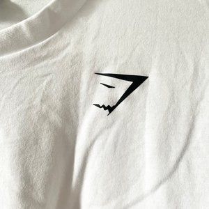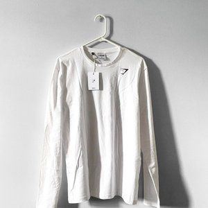 GymShark Long Sleeve T-Shirt Men's White Athletic Shirt 100% Cotton.