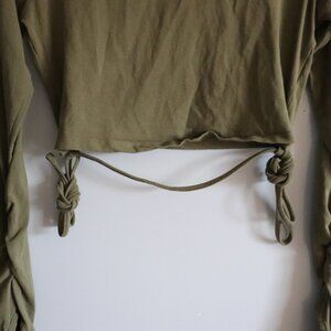 Gymshark Women's Green Sz XS/S Active Graphic Cropped Ribbon Tie Long Sleeve Top